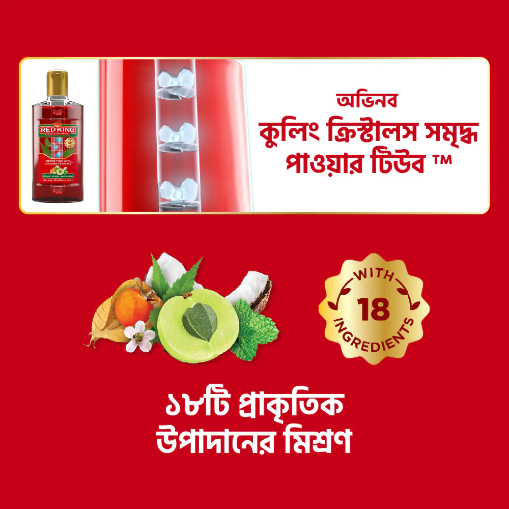 Red King Men’s Cooling Oil is a unique hair oil in Marico’s diverse product portfolio that aims to provide relaxation to the user. It is made with 18 natural ingredients providing the best of nature that come together to create the optimum environment to relax, sleep, and recharge. Demonstrating the constant desire to innovate and evolve with changing needs, the bottle has a unique power tube filled with cooling crystals. This ensures that when the oil is poured out, it passes through the power tube every time giving a fresh sense of coolness and rejuvenation. Furthermore, the crystals enhance its relaxing efficacy, delivering a power cooling experience after a hard day’s work, taking away tension and enhancing the quality of sleep.
